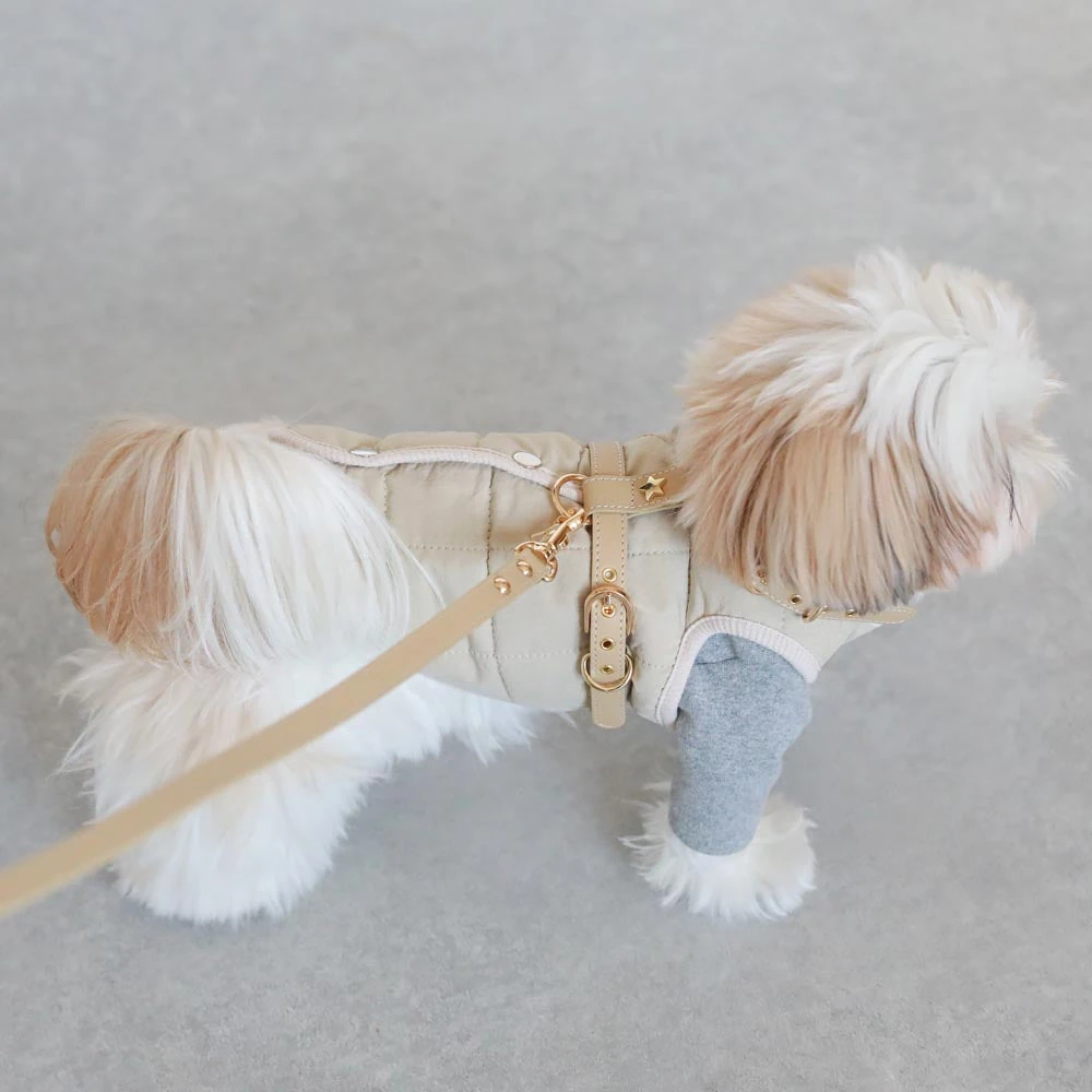 本製品は見た目の美しさだけでなく、実用性にも徹底的にこだわりました。愛犬の動きを妨げない設計で、自然な歩行をサポートします。また、首周りや胴体への負担を分散させる構造により、長時間の使用でも快適です。